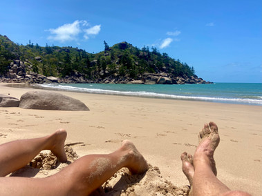 It was an early morning start and a familiar drive back to Townsville for what did become the highlight of this rain-escape. After a 20 minute ferry ride, we dock at an unassuming island that has a vibe of untouched paradise - even with a large community of locals. This is not 24-hour hyper-tourism. It’s tranquil, even as a suburb of the city just 8K away, and has enough on offer so you're not fully “roughing it". Welcome to Magnetic Island. We stayed at Maggie A-Frame, an AirBnB property with amenities and style that make for a laid-back, lie-in-a-hammock-and-read type of stay. It’s a 15-20 minute walk to Horseshoe Bay Beach which has a few shops, a pub and a couple of restaurants/cafés - easy to get your latte in the morning and table service at night. It was all we needed.
