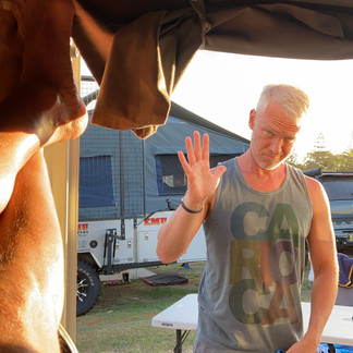 Back to the drive, navigation set, we pass the Big Banana on our way to Broken Head Holiday Park, just 4 hours away, and 15 minutes outside of Byron. This park is ideal; a surfer’s favourite with a short walk to beachfront and impeccable views North to Byron and South toward Ballina. At low tide, you can easily take in the national park trail bordering the ocean on your way to Kings Beach. At night, the park was crowded, but quiet. There are noise restrictions at specified times in caravan parks, but that didn’t bother these two “going grey” nomads. We even manage to share a bottle of wine with another traveller who had escaped neighbouring Victoria. He and his wife were dividing their time between a family campervan and a nearby bolt-hole to give each other some space during this extended lockdown period. We thought it wasn’t a bad option. Would we rather be confined to a house in Melbourne or traveling from beach to beach, enjoying a morning surf and swim? Hmmmmmm . . .