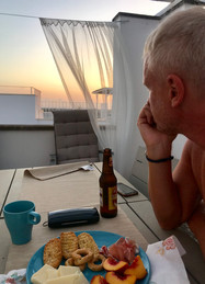 So, it’s no surprise we love Italian cooking – who doesn’t really? And even with three beautiful meals already under our belt – well maybe hanging over our belt -- the highlight of our culinary adventures was still to come. Michele, our local host, and his partner Marco invited us to dinner with their friends Adriano, Ombretta & Maurizio. It was the night of Ferragosto and Ombretta & Maurizio graciously opened their home for the casual rooftop dinner. We were so grateful for the invite but of course nervous with the language barrier. We had visions of poor Michele spending his whole night interpreting, or a worse scenario with everyone not saying a word, passing iPhones loaded with translated phrases. Of course, none of that happened. It turned out Adriano is an English teacher, Ombretta and Maurizio speak English and Marco understands enough so everyone made two visitors feel extra welcome. What we couldn’t say, we communicated through gestures, smiles, laughter and that feeling of community when people click. The rooftop meal was perfect. A fresh, summer cocktail got us off to a good start as we dug into some tasty local pomodoro-topped frisse. There was gorgeous octopus and potato salad, pesto pasta salad, a half watermelon of fresh fruit and our first taste of pasticciotto. That pastry dish is deadly – so good! All of this was lubricated with Maurizio opening lots of tasty prosecco along the way. We talked and laughed and learned more about new friends. This was a perfect example of how a place becomes the people you meet. We really were fortunate to have chosen the Airbnb we did.