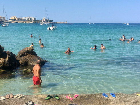Our whole plan for Puglia was focussed on exploring, using Matino as the home base. Day one we headed to the closest larger town to get our bearings and a feel for the roads. Gallipoli was only 20 minutes away and a good stop for sightseeing. We started our tourist time learning about parking lots and meters (hint: you need to know your license plate and be prepared with some change) and eventually got to the “old town”. This would be the first of many Italian old towns in Apulia, one of the richest archaeological regions in Italy. Not wanting to overdo the history and culture, we jumped back behind the wheel for Lido Punta della Suina, a nearby beach club that had been recommended both online and by a few locals. Unfortunately, it had been recommended to most everyone else around Gallipoli -- literally not a single place left in the sand or in the beach club. We trudged around until we found a little sliver of heaven (or something like it?) not far from the club. A dive into aquamarine/emerald green waters of the Ionian Sea made up for all the crowd stress. Definitely heaven. It’s amazing how therapeutic a swim can be and how it always feels fresh and new.
