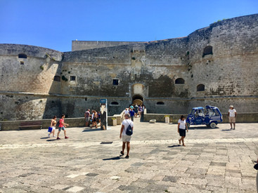 What should we do on this last day in the tiny house and its lovely village and surrounding beaches? We were vacillating between a beach day and another historic site. Otranto had a bit of both so we Aygo-ed our way over. The Greeks founded this village and the alleyways are reminiscent of what you would find in the Cyclades. Unfortunately, we had our only average meal here with mushy polpo and unripe tomatoes (which the woman behind us complained about loudly in French to the Italian servers). But that was the only minus of this gorgeous seaside town.
